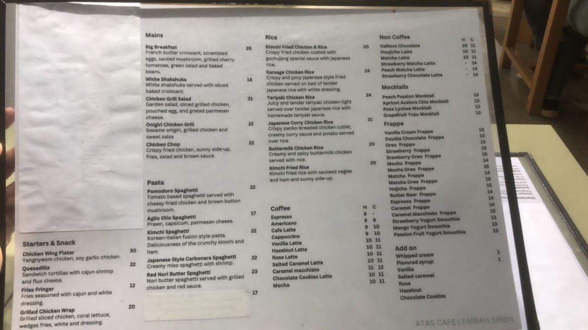 If you're a coffee enthusiast, the cafe’s expertly crafted lattes, complete with beautiful latte art, are worth the visit alone. While the atmosphere is inviting and perfect for chilling out with friends, be prepared for a bit of a climb to reach this culinary gem on the second floor. Overall, Atas Cafe provides a delightful dining experience marked by great food and a relaxing ambiance.